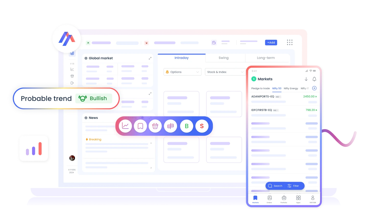 FYERS offers mobile trading applications for both Android and iOS users, Fyers 2.0 App is completely designed for new-age traders and investors to get top-notch seamless experience with advanced technology and innovation. 1 Mn+ App Downloads & Trusted by 5lakh+ traders.